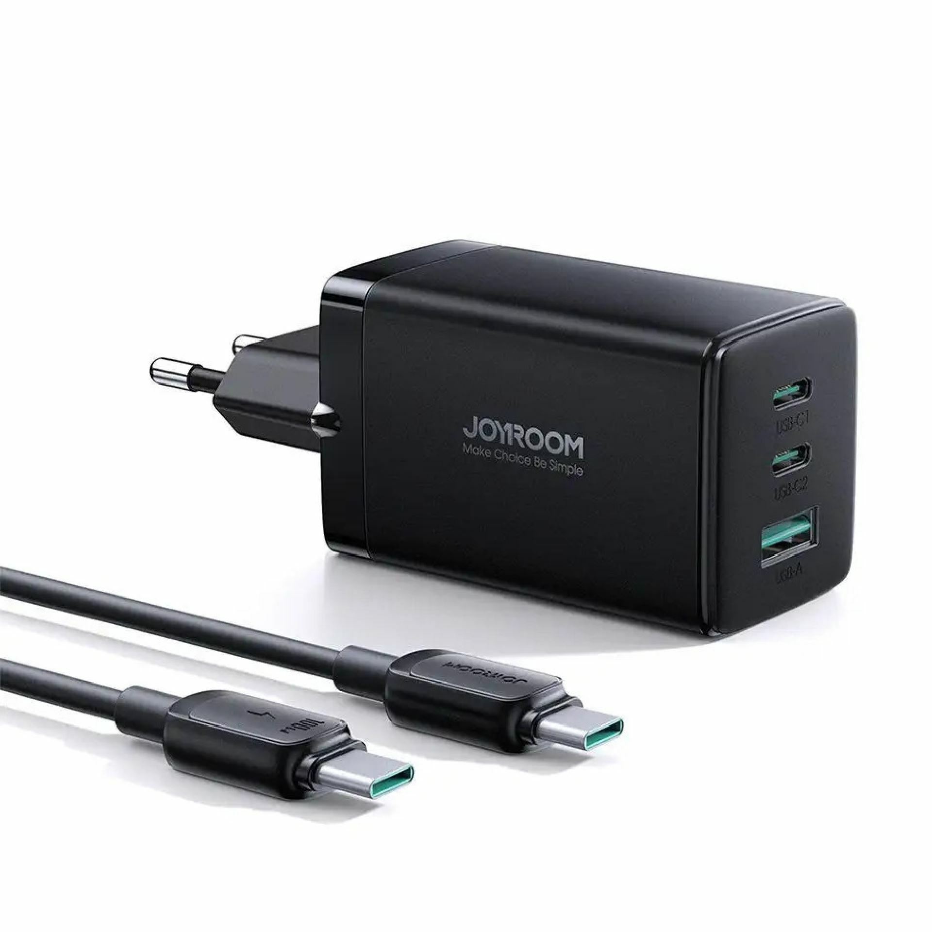 Joyroom JR-TCG01 je 65W GaN polnilec z dvema USB-C in enim USB-A izhodom. Podpira hitro polnjenje z uporabo PD in QC protokolov. Priložen je 1,2 m dolg črn USB-C kabel. Kompaktna zasnova in ognjevarni materiali prispevajo k varni in zanesljivi uporabi.