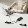 Polni do tri naprave hkrati. Powerbank je opremljen s tremi izhodnimi vrati: 2x USB-A in 1x USB-C.