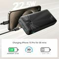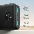 Polni do tri naprave hkrati. Powerbank je opremljen s tremi izhodnimi vrati: 2x USB-A in 1x USB-C.