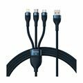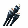 Udobno napolnite do 3 naprave hkrati. USB 3 v 1 kabel Baseus Flash Series je opremljen s 3 priključki - USB-C, lightning in mikro USB. Omogoča hitro polnjenje z močjo do 100 W. Omogoča tudi prenos datotek s hitrostjo do 480Mbps (na priključku USB-C/Lightning). Hkrati je izjemno trpežen in zagotavlja varnost uporabe.