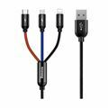 Polnilni USB kabel s 3 različnimi vtiči USB - C / micro USB / Lightning.