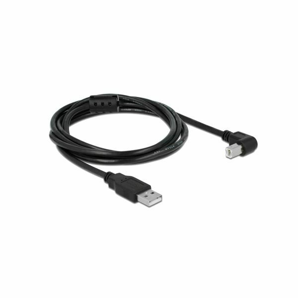 Kabel USB 2.0 A-B 2m kotni Delock črn omogoča povezavo med napravo s priključkom USB Type-B in osebnim ali prenosnim računalnikom, opremljenim s prostim USB priključkom.