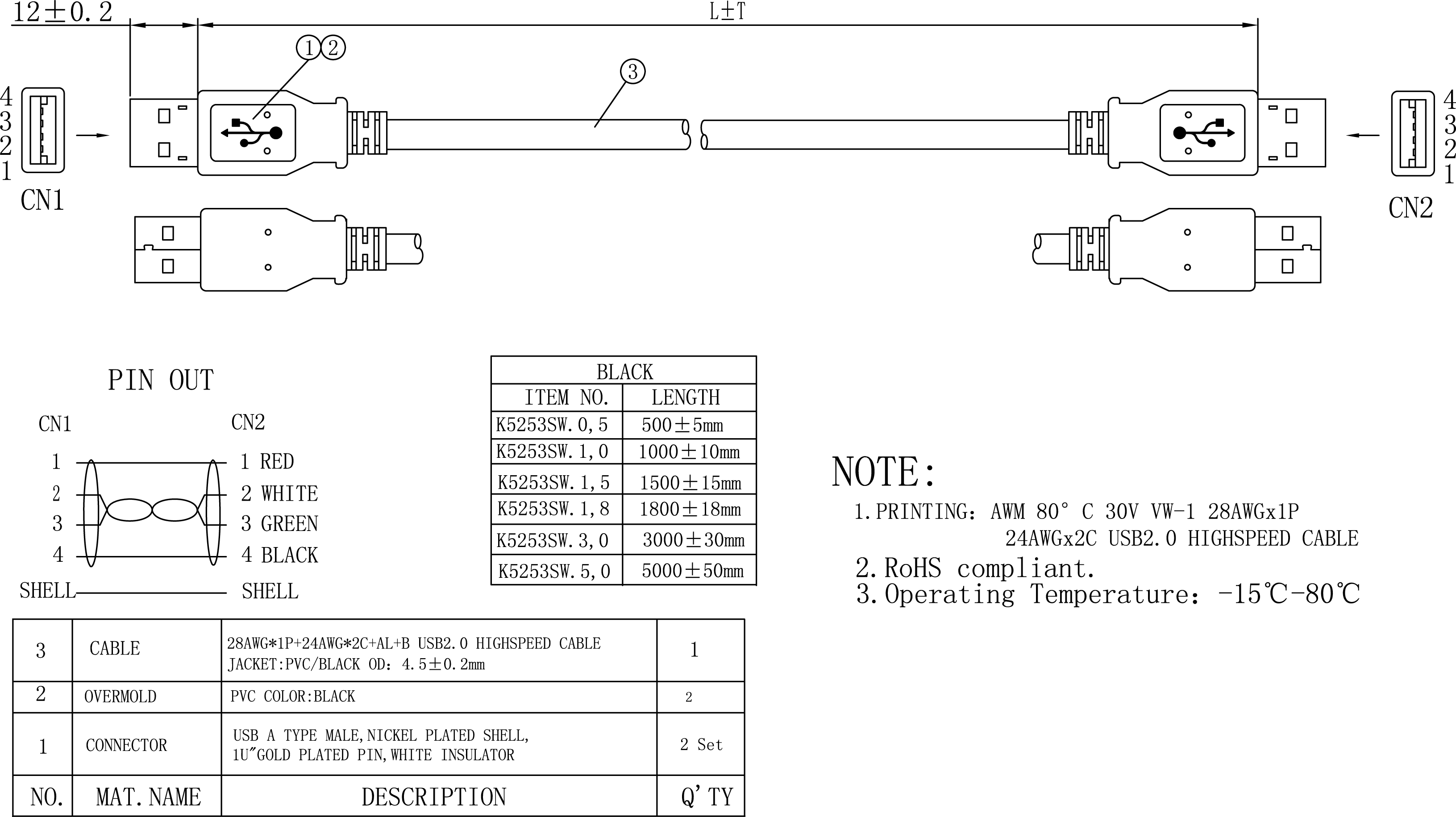 1x A tip moški vmesnik, 1x A tip moški vmesnik