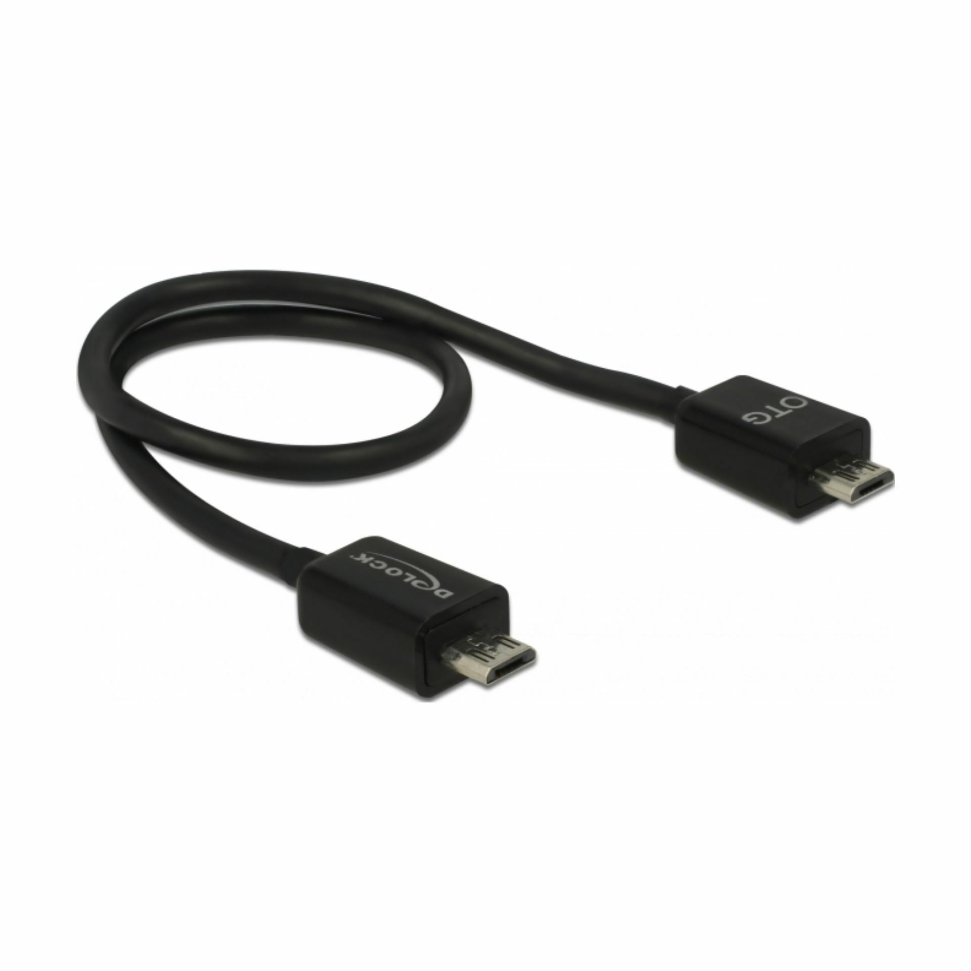 Delock kabel, ki vam omogoča polnjenje Mikro USB naprave iz druge Mikro USB (OTG) naprave naprimer polnenje telefona, tablice, pametne ure, MP3 predvajalnika in podobno iz druge OTG naprave, dolžine 0,3m.
