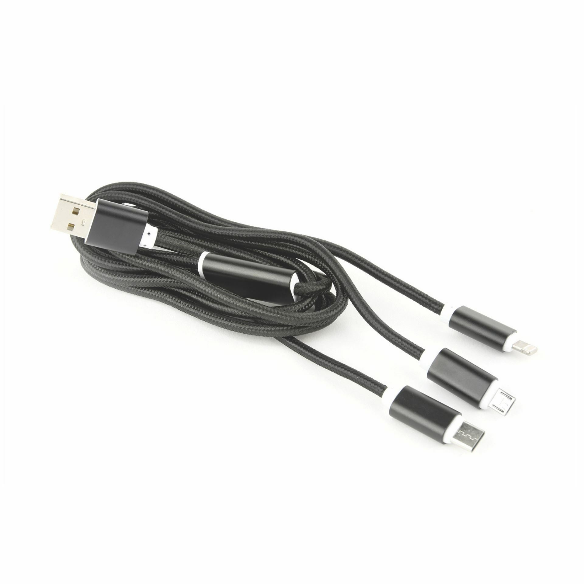 Cablexpert napajalni kabel 3-v-1 črne barve omogoča istočasno napajanje 3 pametnih telefonov.
