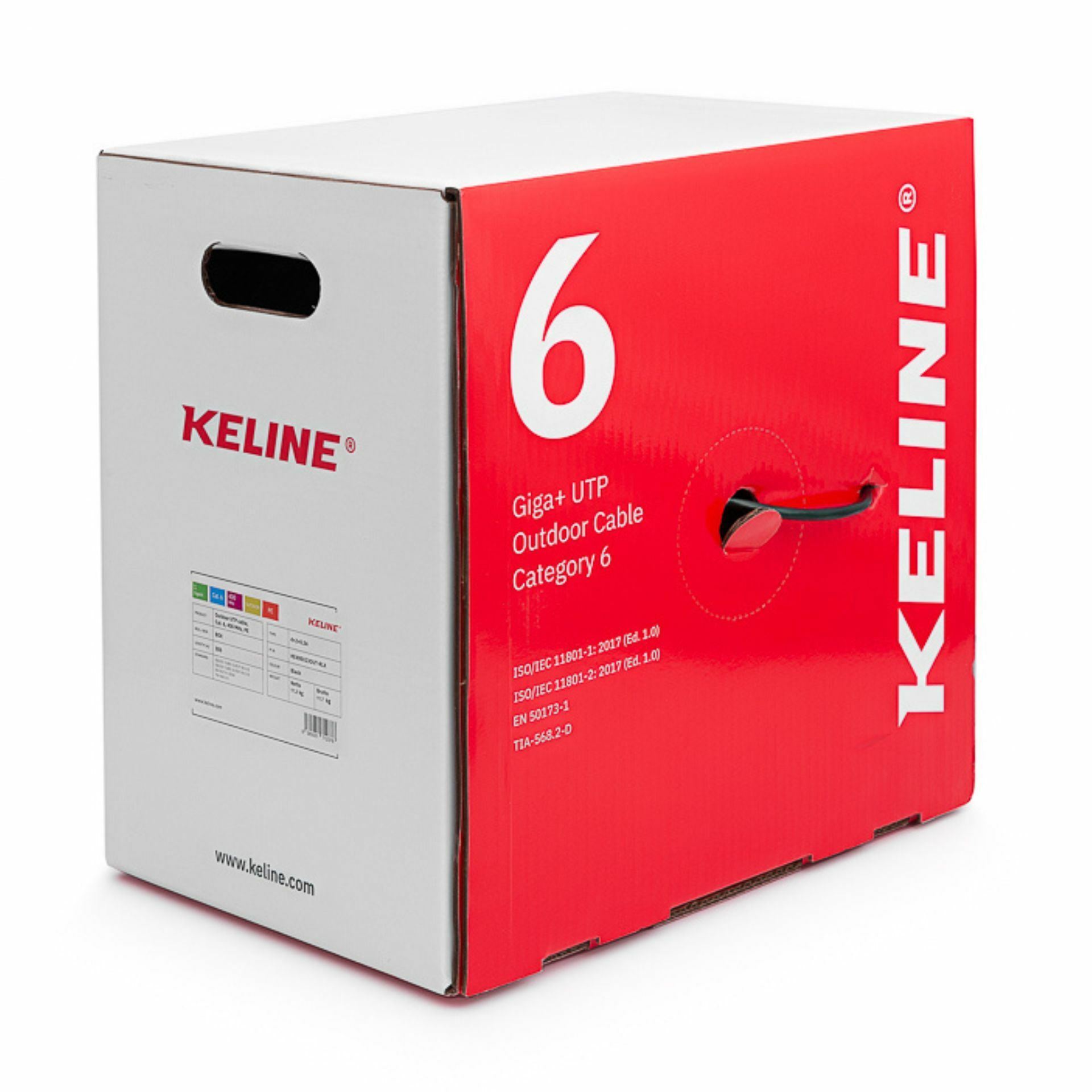 KELine mrežni UTP kabel CAT.6 za zunanjo uporabo, plašč premera 6 mm omogoča izredno dobro odpornost na mehanske poškodbe in zunanje vplive vlago, vodo in UV-sevanje. Ni zaščiten pred elektromagnetnimi motnjami.