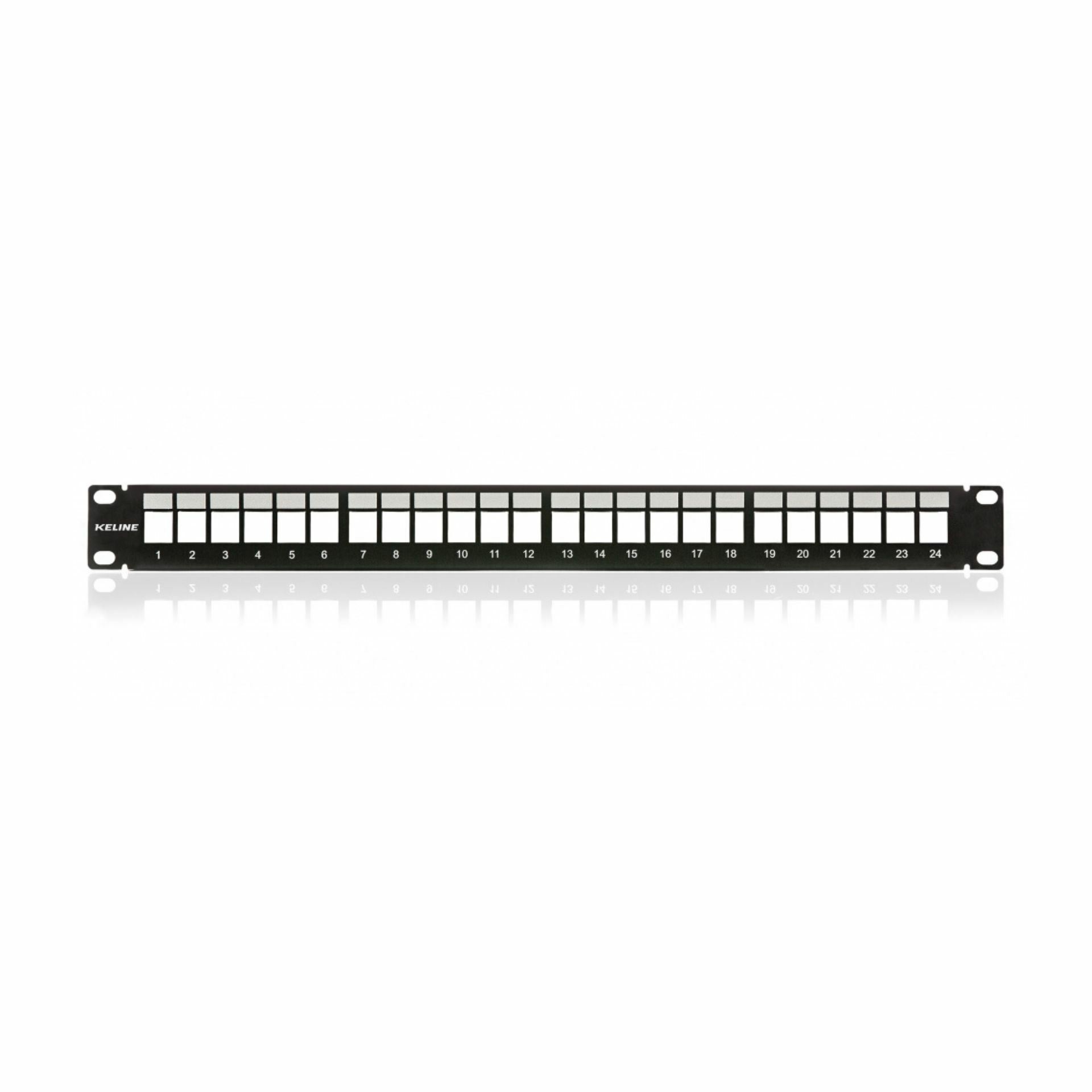 KELine 24-portni panel KEP-EMPTY-S je zasnovan za montažo v 19" omare in omogoča enostavno organizacijo ter namestitev keystone modulov kategorije Cat.5e, Cat.6 ali Cat.6A. Vgrajen nosilec kablov zagotavlja urejeno napeljavo, priložene pa so tudi vezice, vijaki in ozemljitveni vijak za popolno namestitev.