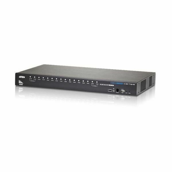 Aten KVM stikalo CS17916 za kontrolo šestnajstih računalnikov, možnost vezave v kaskado do dveh nivojev - kontrola 256 računalnikov.