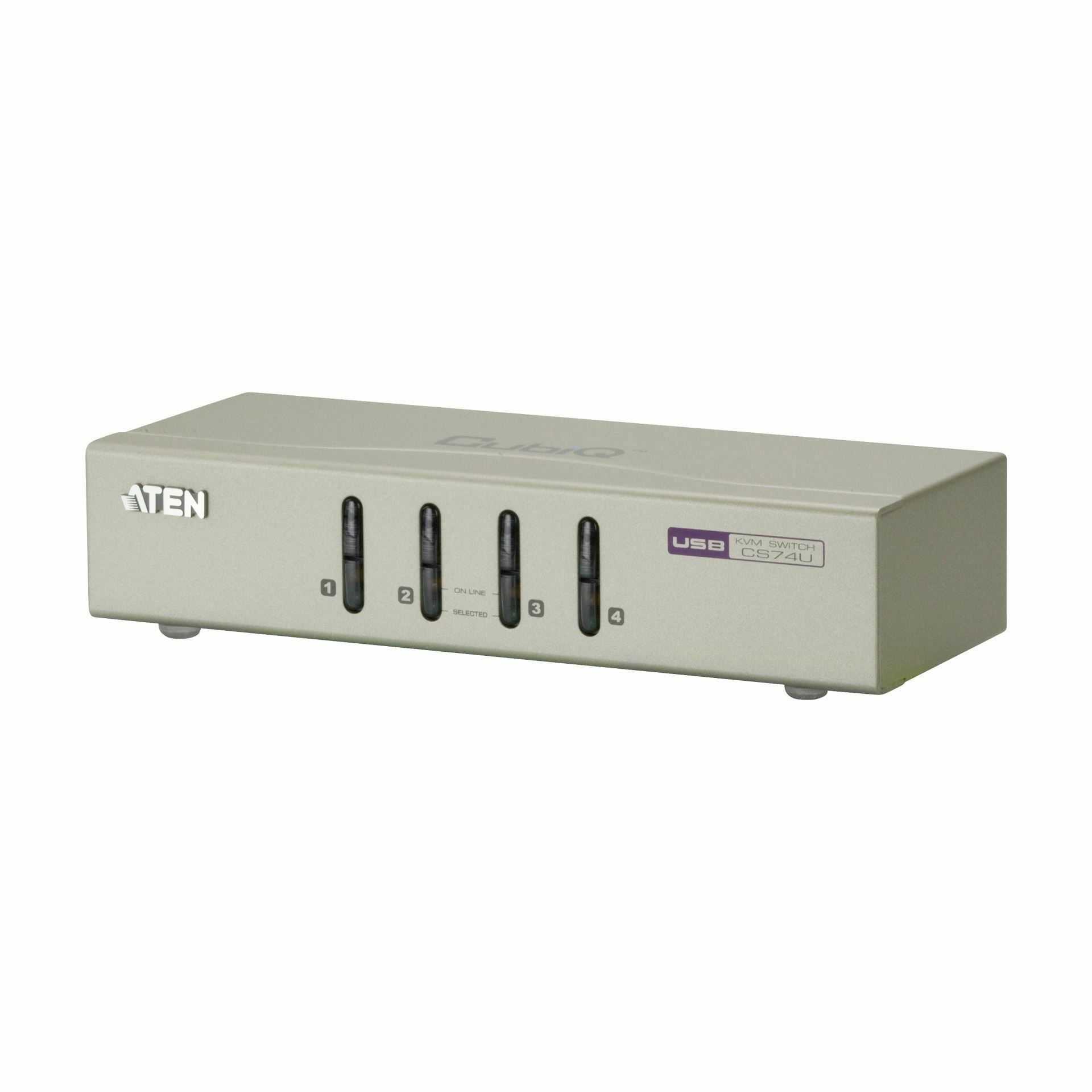 Aten USB KVM stikalo CS74U je namizni preklopnik, z eno konzolo (miško, tipkovnico in ekranom) nadzirate 4 računalnike.