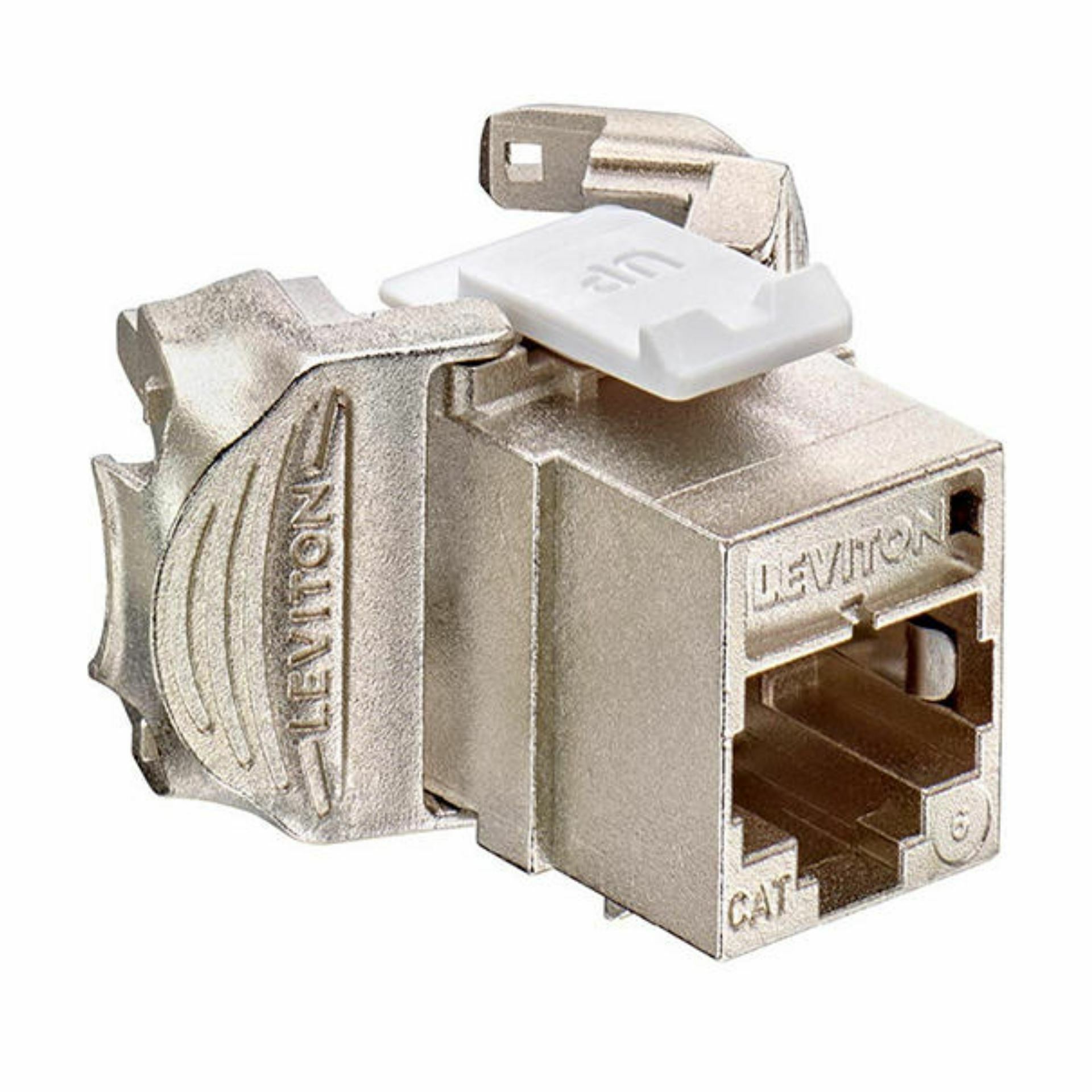 Leviton AX0 Cat 6 je vmesnik, ki omogoča delovanje v omrežjih do 1000BASE-T, primeren za zaščito pred elektromagnetnimi (EMI) in radijskimi (RFI) motnjami. Kompatibilen z modularnimi paneli QUICKPORT™. Je srebrne barve.