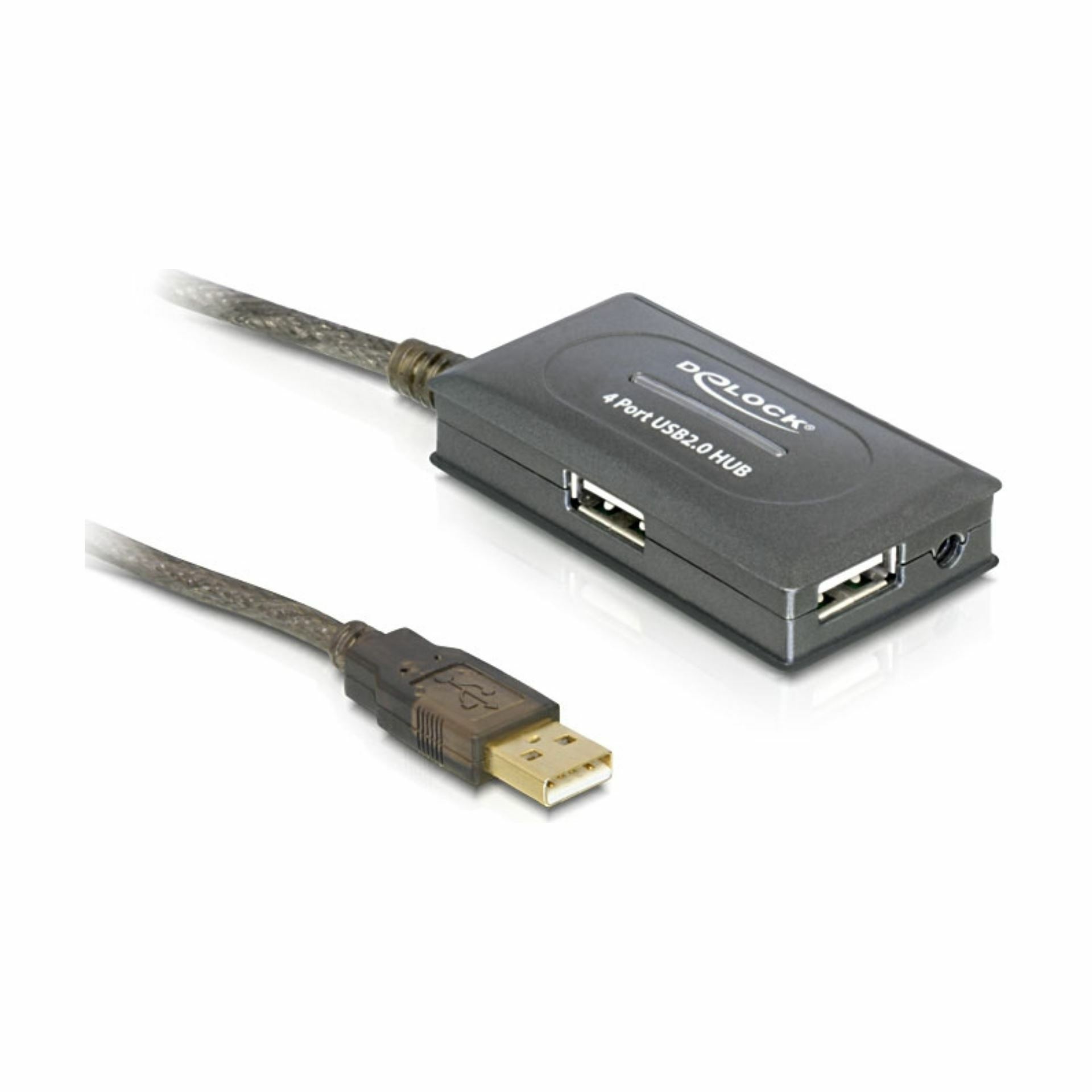 Delock USB Line extender podaljšek 10m z 4-vratnim hub-om.