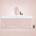 Logitech MK470 je komplet kompaktne tipkovnice in miške roza barve, ki se ponaša z minimalističnim, modernim izgledom in tihim delovanjem. Enostavno ga povežete prek majhnega sprejemnika USB-A in že deluje. Tipkovnica ponuja izjemno udobno tipkanje, miška pa se zahvaljujoč premišljeni obliki prilega vsaki roki.