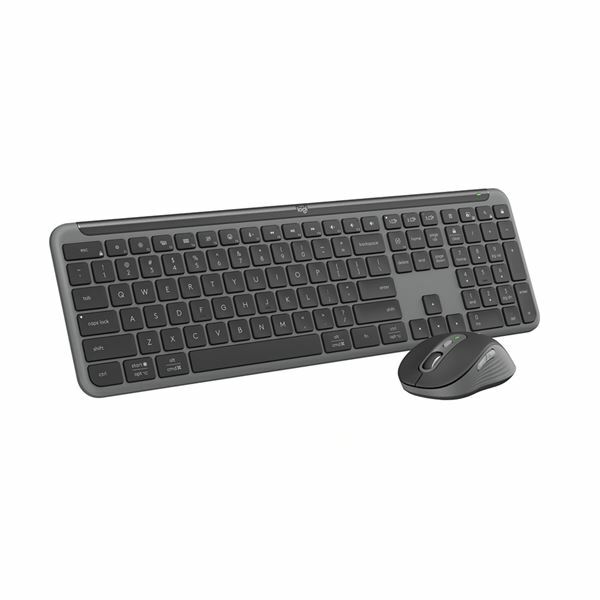 Komplet miške in tipkovnice Signature Slim MK950 omogoča brezžično povezavo prek Logi Bolt sprejemnika ali Bluetooth-a ter preklapljanje med napravami z Easy-Switch gumbi. Miška ima 1000 DPI optični senzor, tihi klik in SmartWheel kolešček, tipkovnica pa tihe tipke, ergonomske nogice in indikatorske lučke.