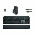 Logitech tipkovnica & miška MX Keys S COMBO z naslonom za zapestje. Miška in tipkovnica sta grafitne črne barve. Tipkovnica MX Keys S ima slovensko gravuro na nizkoprofilnih rahlo vbočenih tipkah. Zasnovana je za udobno tipkanje, ima aluminijasto ohišje in je opremljena s pametno osvetlitvijo. Miška je ergonomsko oblikovana in ima 8000 DPI senzor, ki omogoča uporabo tudi na steklenih površinah. Opremljena je s tihim klikom in magnetnim koleščkom za hitro drsenje po tisočih vrsticah. Komplet nudi povezavo z Logi Bolt USB sprejemnikom ali preko Bluetooth. Podpirata tehnologijo Flow s katero lahko MX Keys S uporabljate na več napravah hkrati. Miška in tipkovnica imata polnilno baterijo, ki se jo polni s priloženim USB-C kablom.