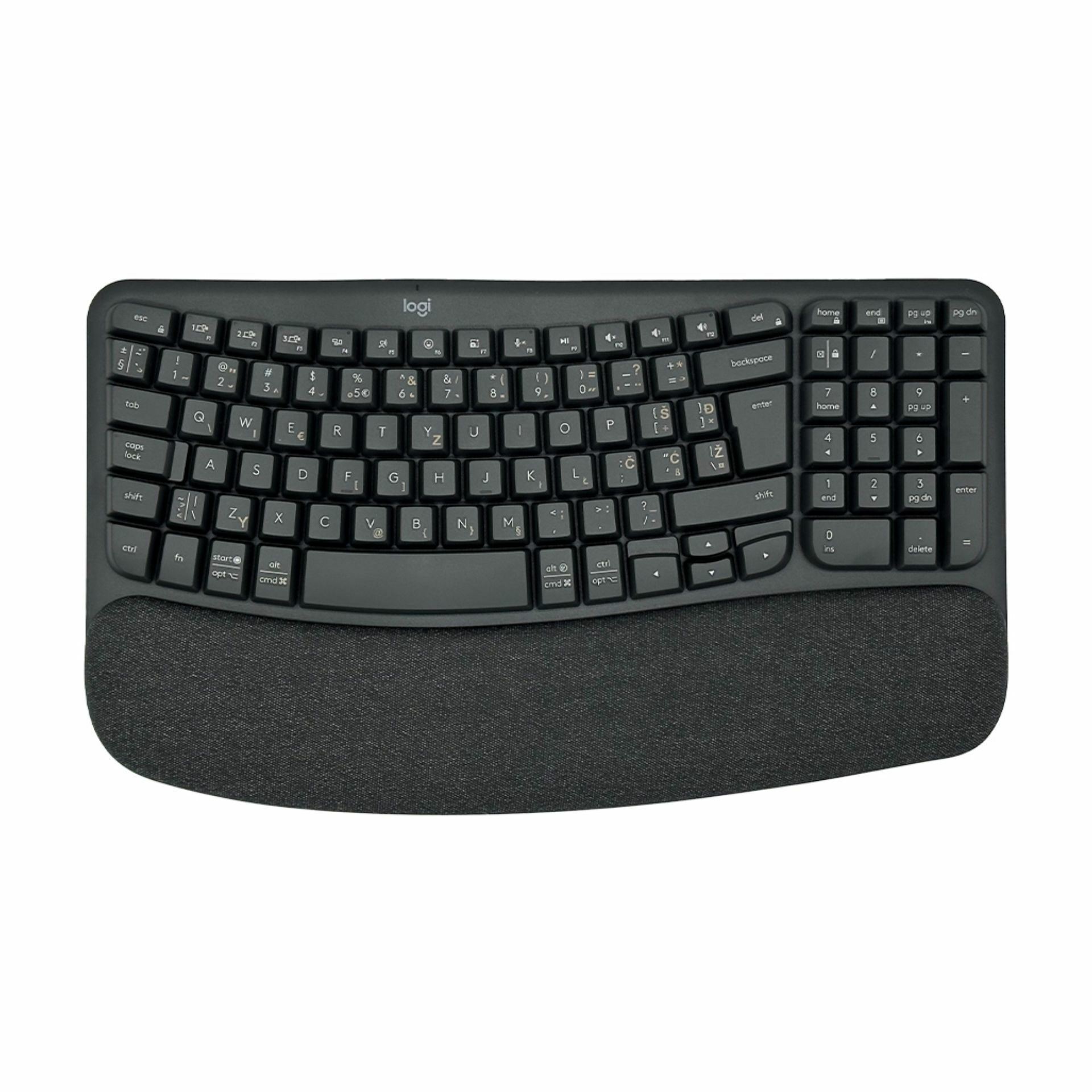 Logitech Wave Keys brezžična ergonomska tipkovnica je primerna za udobno in naravno več urno tipkanje. Njena valovita oblika in oblazinjen podstavek za dlani naravno postavi vaše roke, zapestja in podlakti v optimalen položaj za udobno uporabo. Povezava preko bluetooth ali preko USB Logi Bolt.