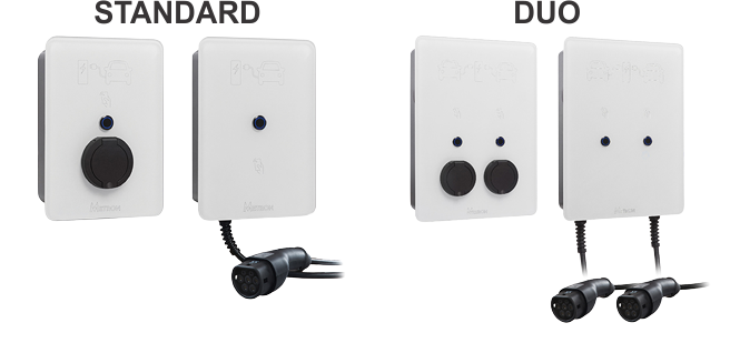 Polnilne postaje imajo lahko Tip 2 (EU standard) polnilno vtičnico ali pa že vgrajen polnilni kabel poljubne dolžine (raven ali spiralni samozložljiv) z vtikačem Tip 2 (opcijsko Tip 1 ali Tip 3).