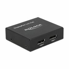 Delock množilnik sprejema DisplayPort signal iz PC ali prenosnika in ga razdeli na dva priključena monitorja. S tem lahko eno DisplayPort povezavo uporabimo za upravljanje dveh DisplayPort monitorjev..