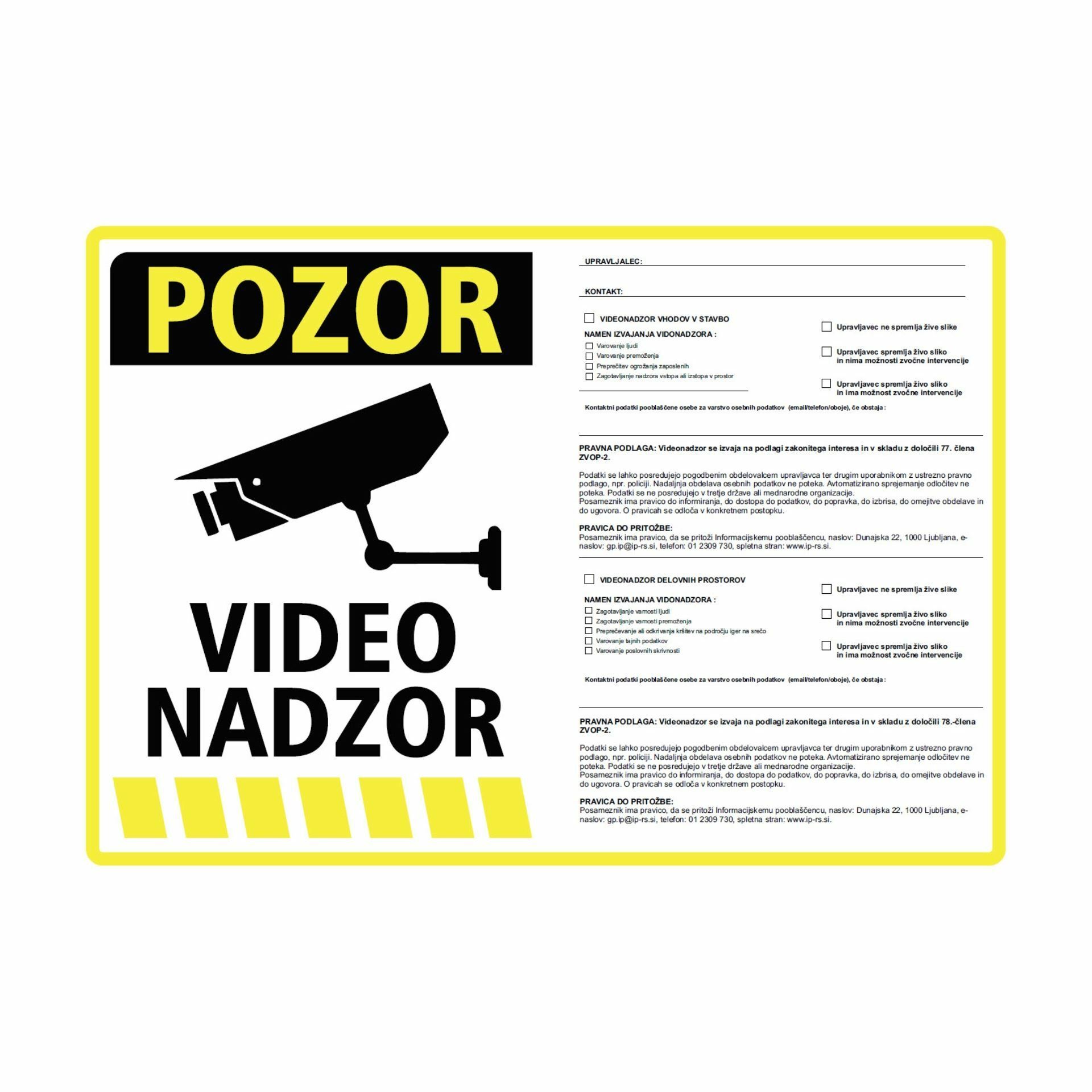Samolepilna PVC nalepka skladna z novim zakonom ZVOP2, odporna na vremenske vplive vlaga, sonce, odporna tudi na UV svetlobo…