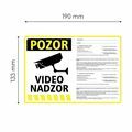 Samolepilna PVC nalepka skladna z novim zakonom ZVOP2, odporna na vremenske vplive vlaga, sonce, odporna tudi na UV svetlobo. Dimenzije 190x133mm z rumenim robom…