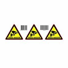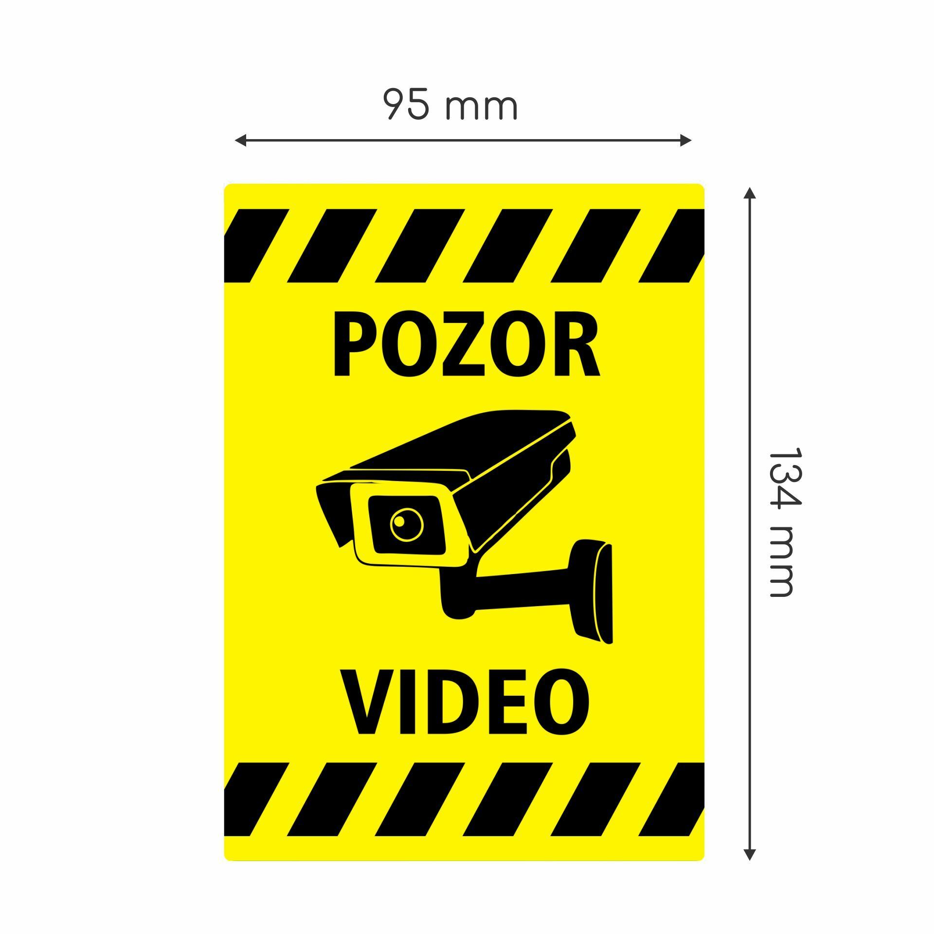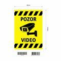 Samolepilna PVC nalepka z napisom POZOR VIDEO, odporna na vremenske vplive vlaga, sonce, obstojna tudi na UV svetlobo do 5 let.
