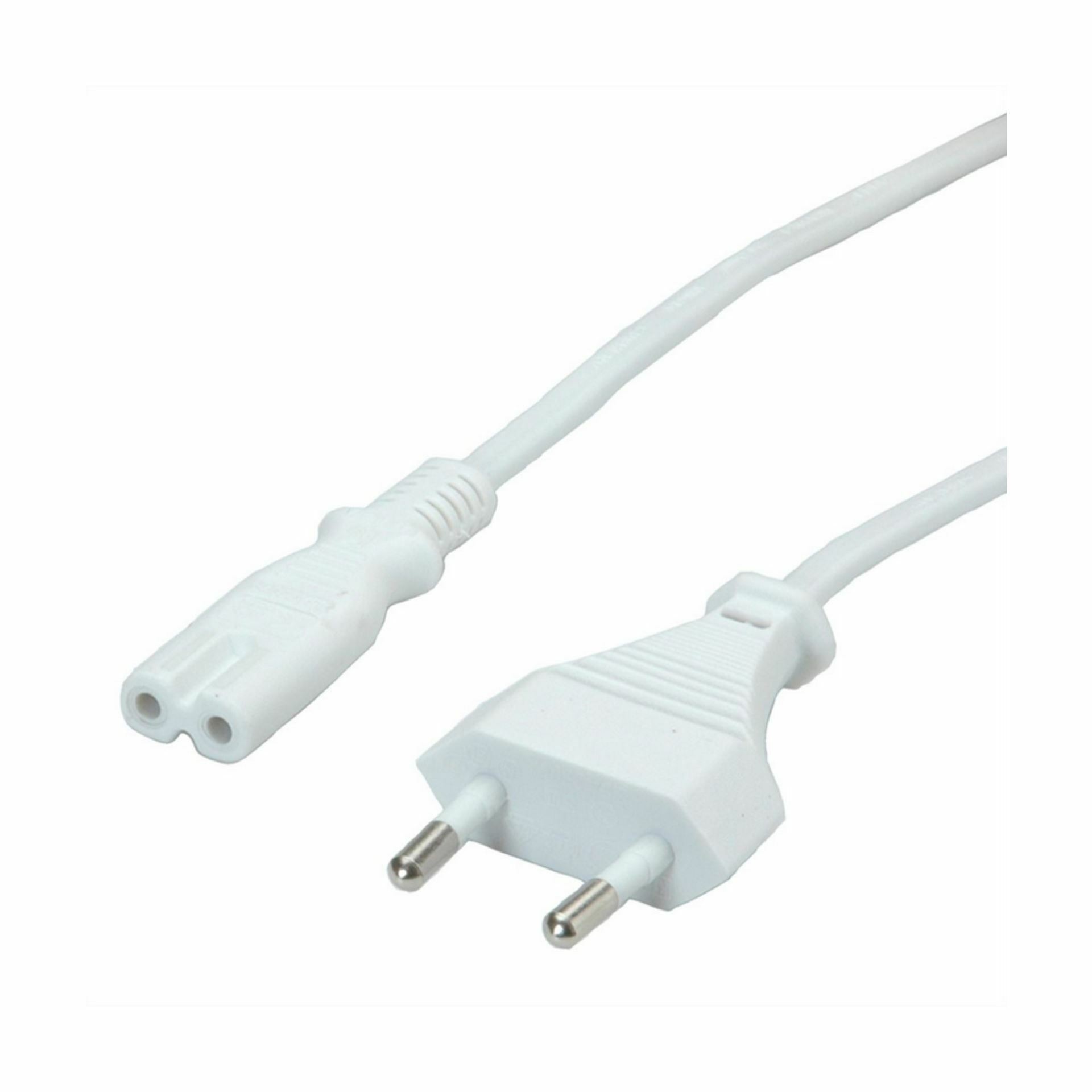 Value priključni bipolarni napajalni kabel bele barve za priključitev različnih elektronskih naprav, dolžine 1.8m.