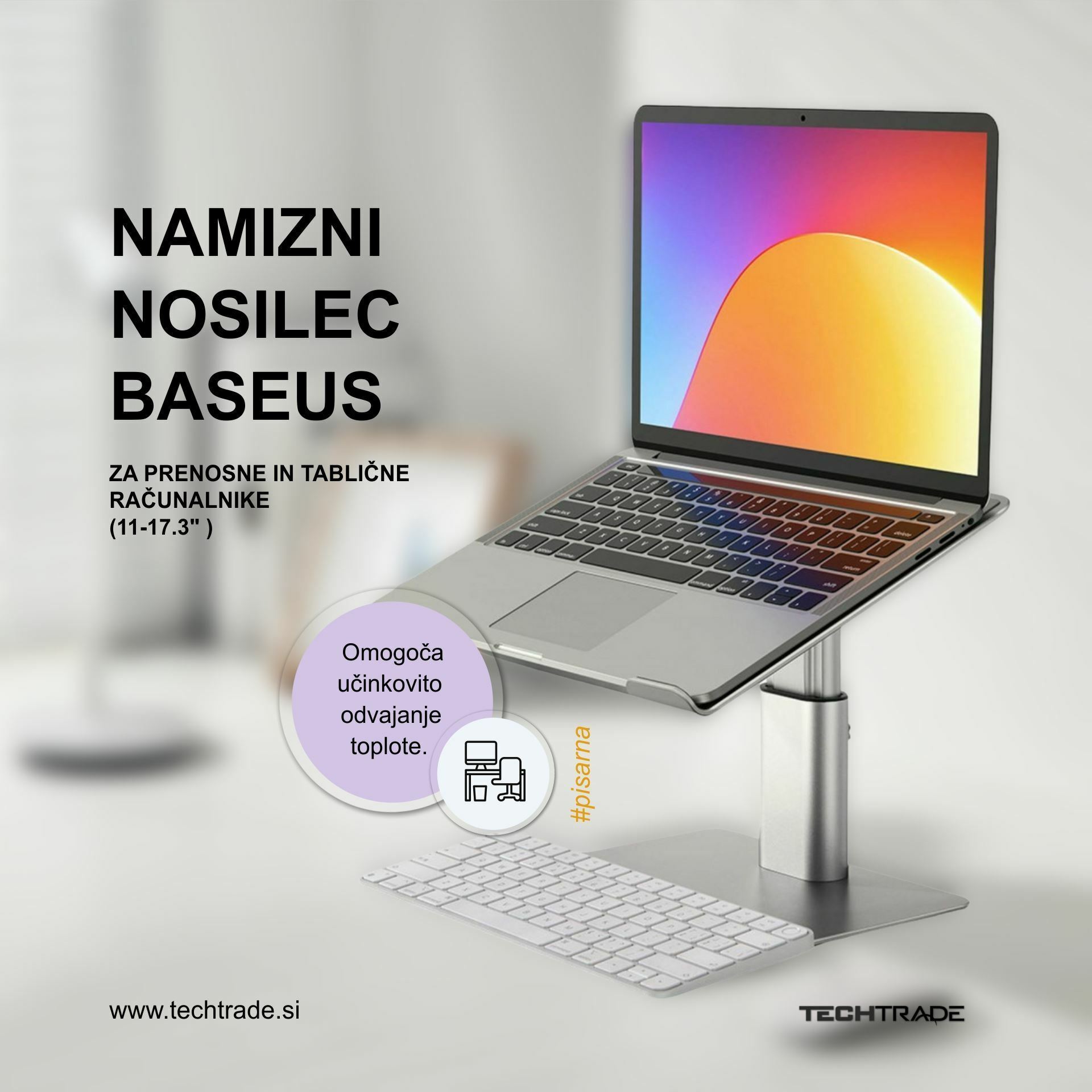 Zagotovite si sanjsko udobje med delom ali sproščanjem. Stojalo Baseus popolnoma ustreza prenosnim računalnikom in tabličnim računalnikom 11-17.3" in omogoča učinkovito odvajanje toplote. Zahvaljujoč nastavljivi zasnovi ga lahko enostavno prilagodite svojim potrebam. Za njegovo proizvodnjo smo uporabili visoko kakovostne aluminijeve zlitine, ki zagotavlja izjemno vzdržljivost. Lahko prenese obremenitev do 10 kg!