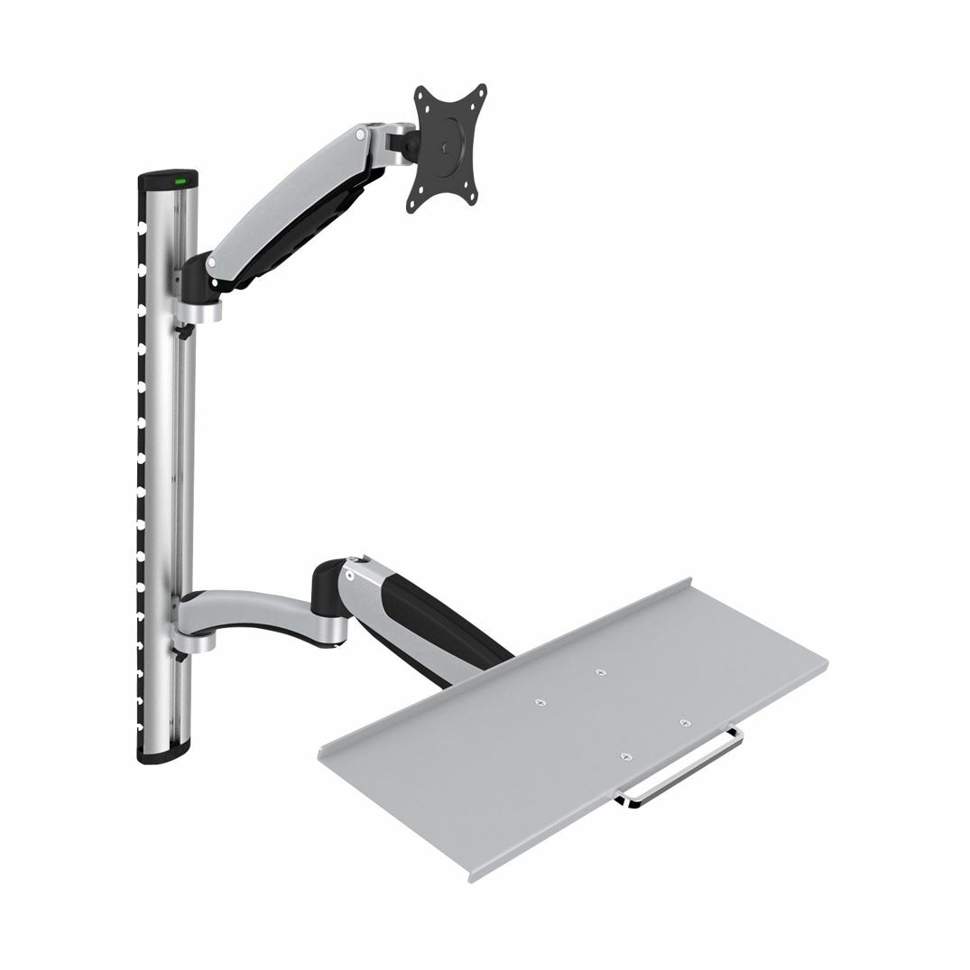 Digitus univerzalni stenski nosilec s flex polico DA-90354 s prilagodljivo nastavitvijo delovne višine za montažo monitorja in tipkovnice na steno, prilagodljiva plinska vzmet, nosilnost do 8kg, VESA 100x100.