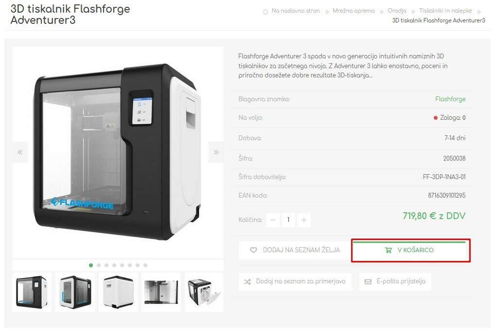 - Artikle dodajate v košarico s klikom na gumb ‚V košarico‘.