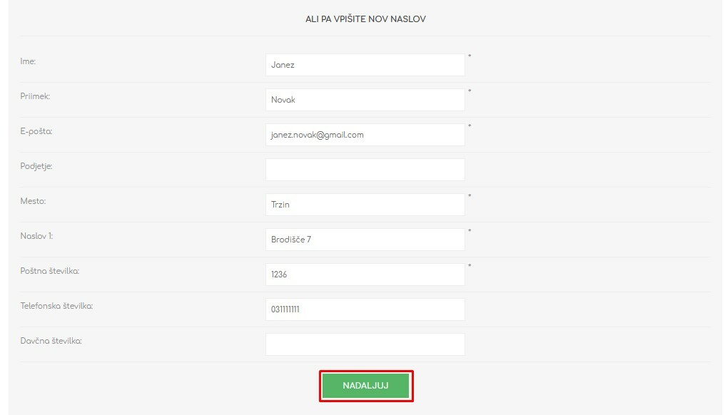 - Še enkrat preverite pravilnost podatkov in oddajte naročilo.