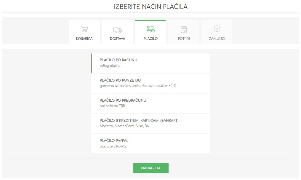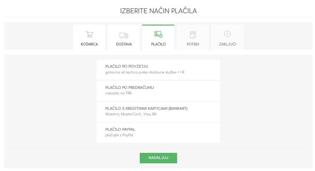 - V košarici, na koraku ‚Plačilo‘, izberete način plačila.