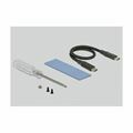 Delock ohišje omogoča namestitev M.2 PCIe NVMe SSD diska v 2280, 2260, 2242 in 2230 formatu, nato pa povezavo preko USB s PC ali prenosnikom.