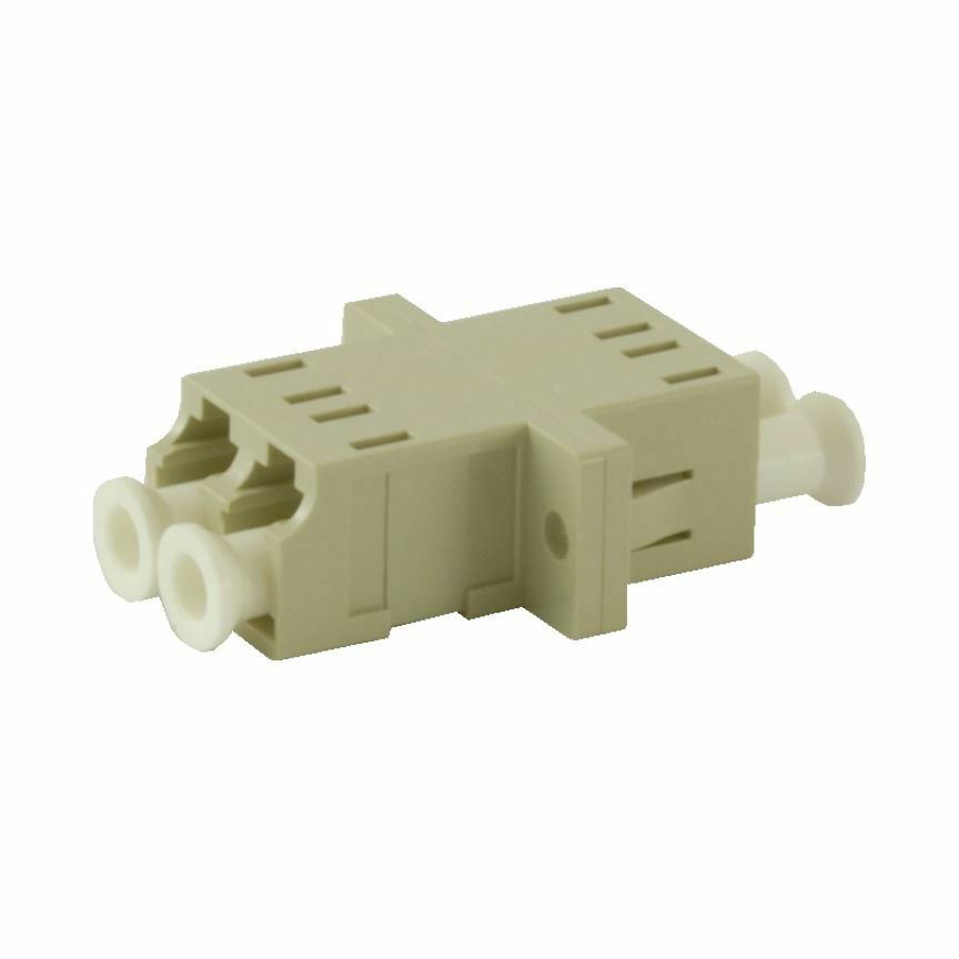 Leviton optični LC-LC adapter za panel, material pocinkan nikelj, z zaščitnimi kapicami.