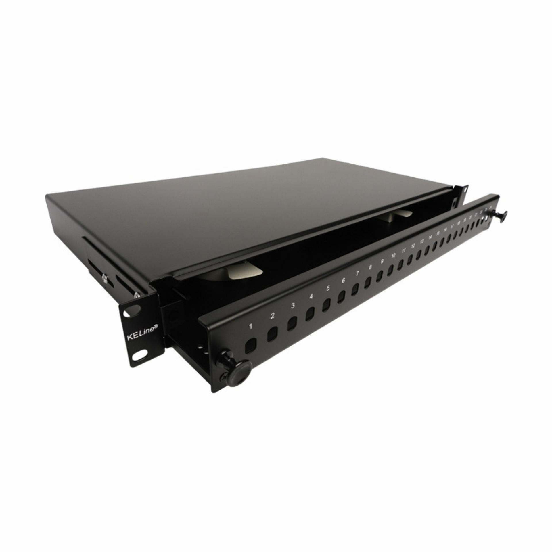 KELine drsni 19" optični patch panel, prostor za 24 optičnih vmesnikov, prazen panel brez optičnih vmesnikov, črna barva...
