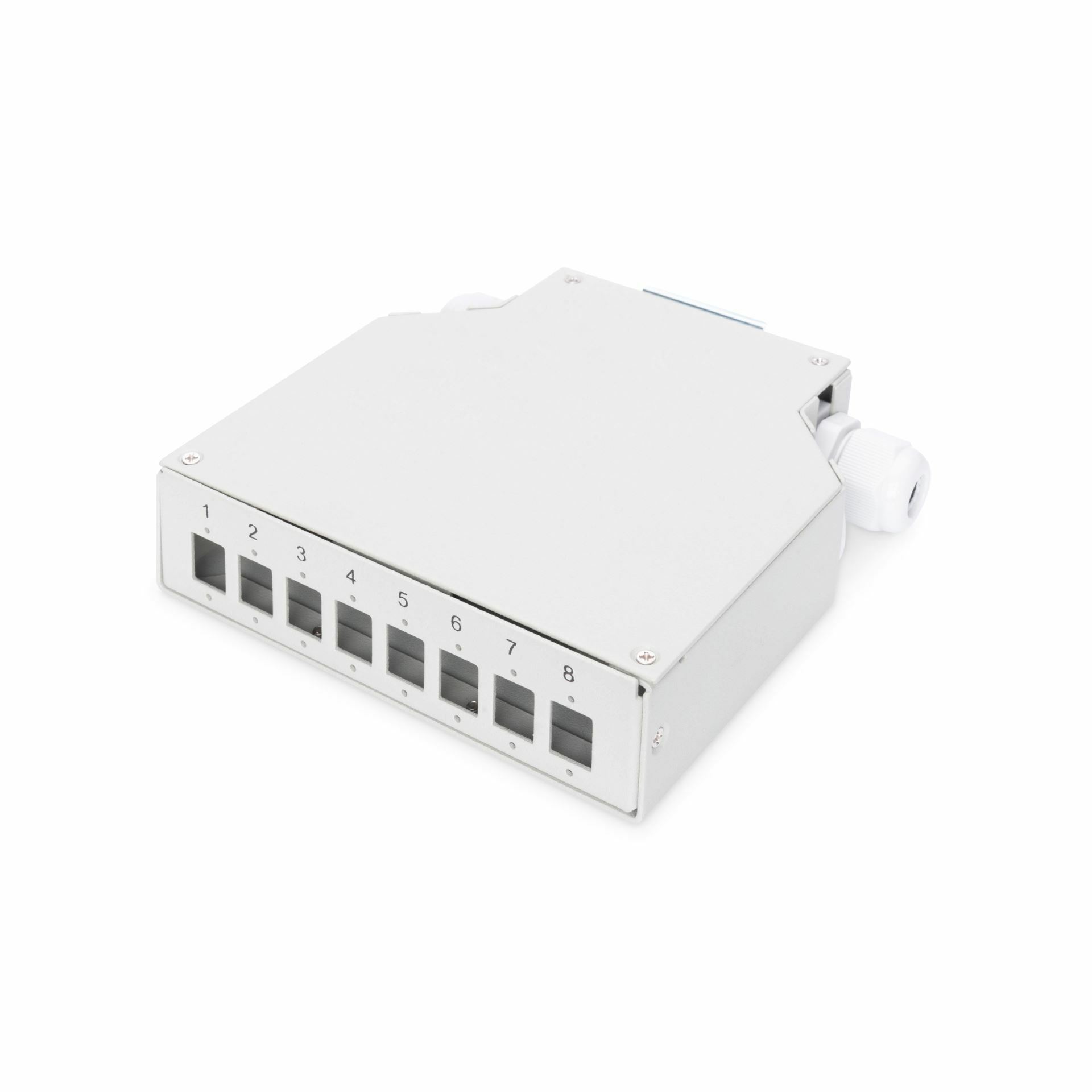 Optični panel za montažo na DIN letev.za 8x LC/DX spojkeKovinsko ohišjeDimenzije: 125 x 130 x 35 mm