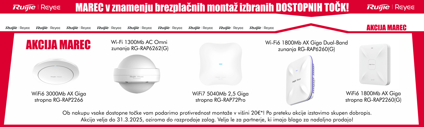 PRAVILNIK AKCIJE – MAREC 2025: BREZPLAČNA MONTAŽA WI-FI DOSTOPNIH TOČK RUIJIE REYEE