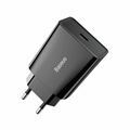 Baseus USB tip-C polnilec črne barve je primeren za hitro napajanje mobilnih naprav s podporo hitrega napajanja. Napajalnik omogoča različne napetosti med 5V in 12V, najvišja izhodna moč pa je 20W.