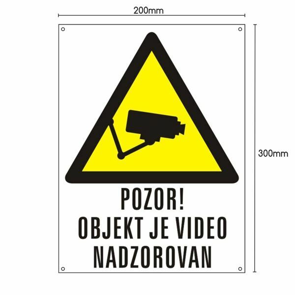 Bela PVC tabla dimenzij 200x300mm za ozaveščanje o vzpostavljenem videonadzoru,UV odporna.