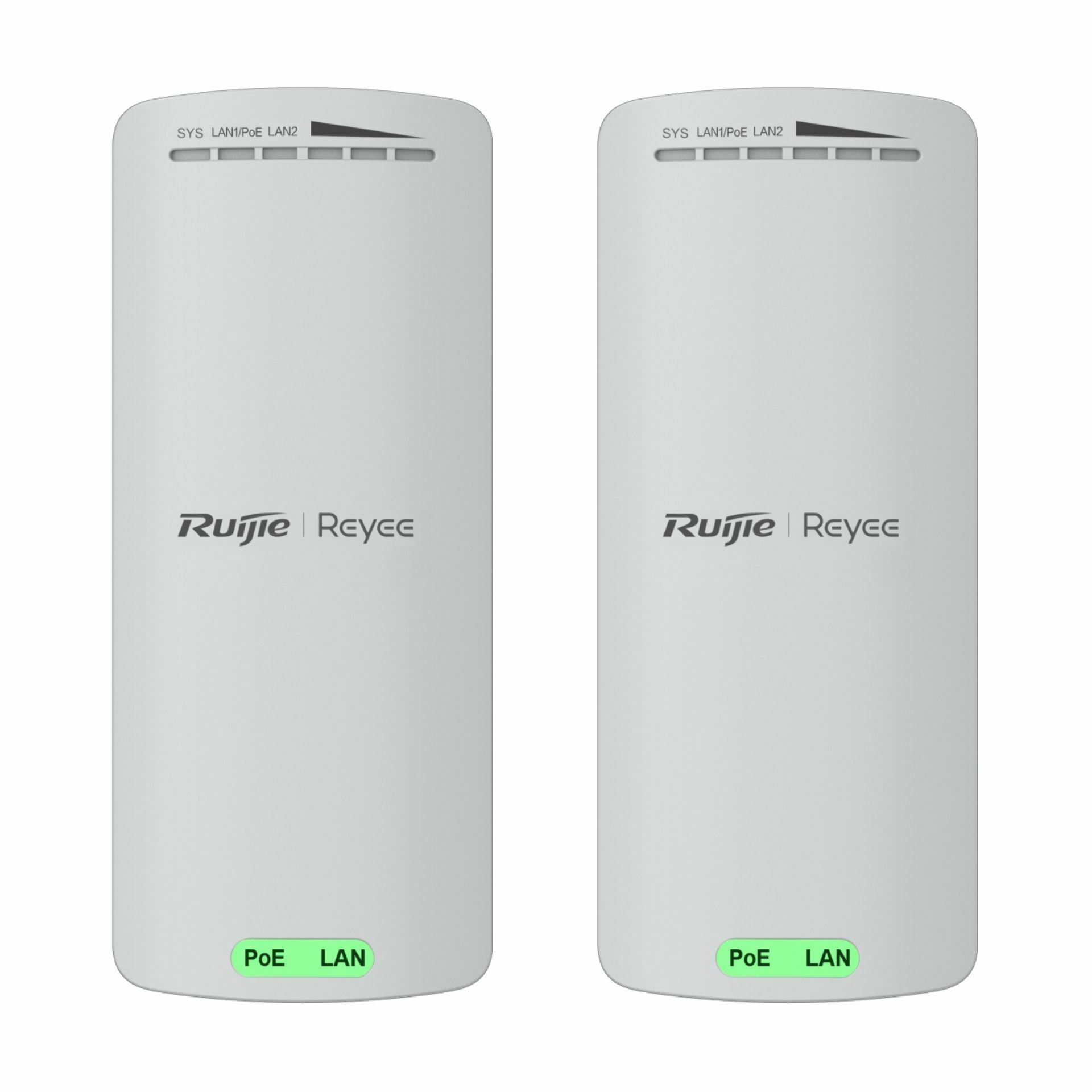 Paket vsebuje: 2x Ruijie Reyee dostopna točka Wi-Fi 300Mb bridge 2.4GHz zunanja RG-EST100, 2x Napajalnik, 2x Montažni set, 1x Navodila