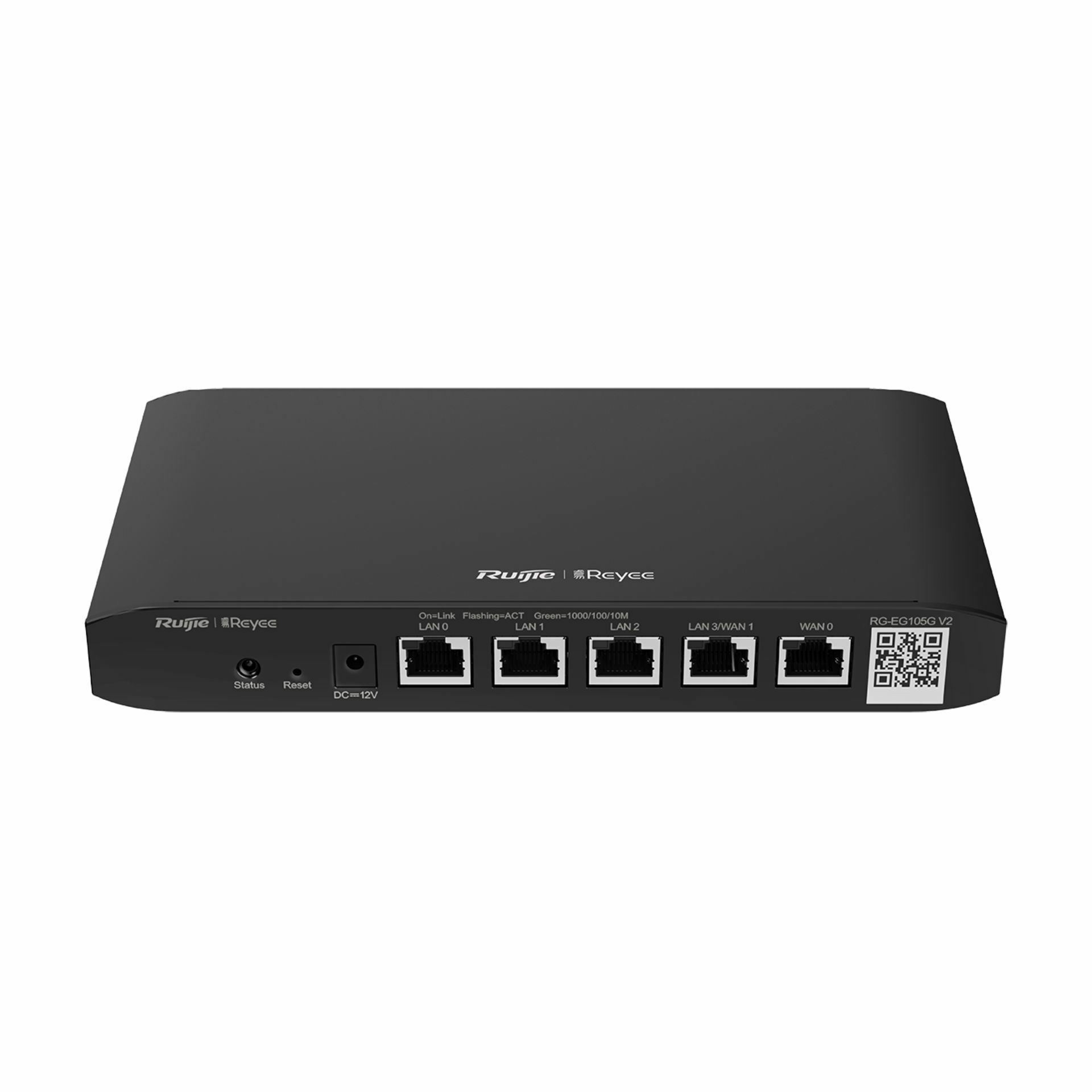 Ruijie RG-EG105G V3 usmerjevalnik s 5 giga porti omogoča hitro in varno povezavo na dolge razdalje. Njegova napredna varnostna funkcionalnost vključuje požarni zid, nadzor dostopa in zaščito pred vdori, kar zagotavlja varno delovanje vašega omrežja ter zaščiti vaše občutljive podatke. Uporabniku prijazna konfiguracija in enostavna uporaba.