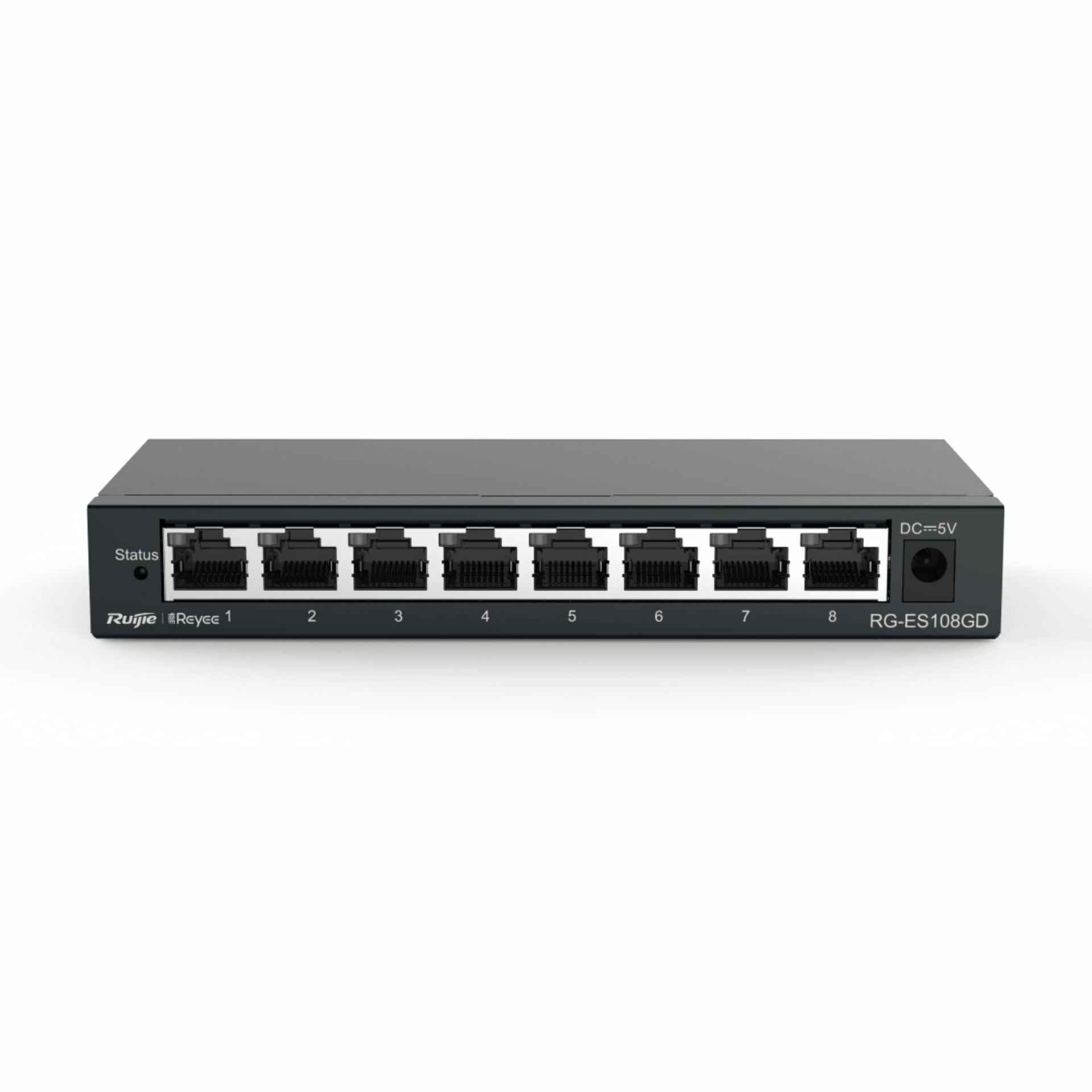 Ruijie RG-ES108GD je 8-portno Gigabit stikalo primerno za uporabo v industriji in doma. Zanesljiv in kakovosten switch s kompaktnim kovinskim ohišjem omogoča hitro in enostavno namestitev. Povežite vaše naprave brezskrbno in tiho s pasivnim hlajenjem brez ventilatorja. Ne glede na to, ali gre za pisarniško okolje, domačo uporabo ali mala podjetja, bo Ruijie stikalo kos vsem vašim potrebam.