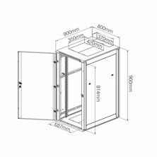 DATECH visoko kvaliteten sestavljiv kabinet iz jekla, pakirano v več paketih, ključavnica in varnostno steklo na prednjih vratih, vrata in stranice so enostavno snemljive, dimenzije znašajo 22U 600x900mm.