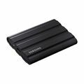 Samsung T7 Shield je zunanji SSD NVMe disk z IP65 odpornostjo na prah in vodo ter zunanjim ohišjem odpornim na udarce. Disk ima kapaciteto 1 TB ter omogoča hitrosti branja do 1050 MB/s in hitrosti pisanja do 1000 MB/s. Omogoča povezovanje z USB-C kablom.