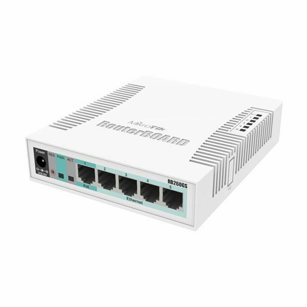 Mikrotik RB260GS je gigabitno stikalo s 5x gigabitnimi porti in SFP kletko. Primerno je za uporabo kot optično stikalo v okoljih, kjer zaradi zunanjih vplivov (visokoenergetske naprave, električne inštalacije, ipd.) povezava preko bakrenih vodnikov ni mogoča oz. stabilna.