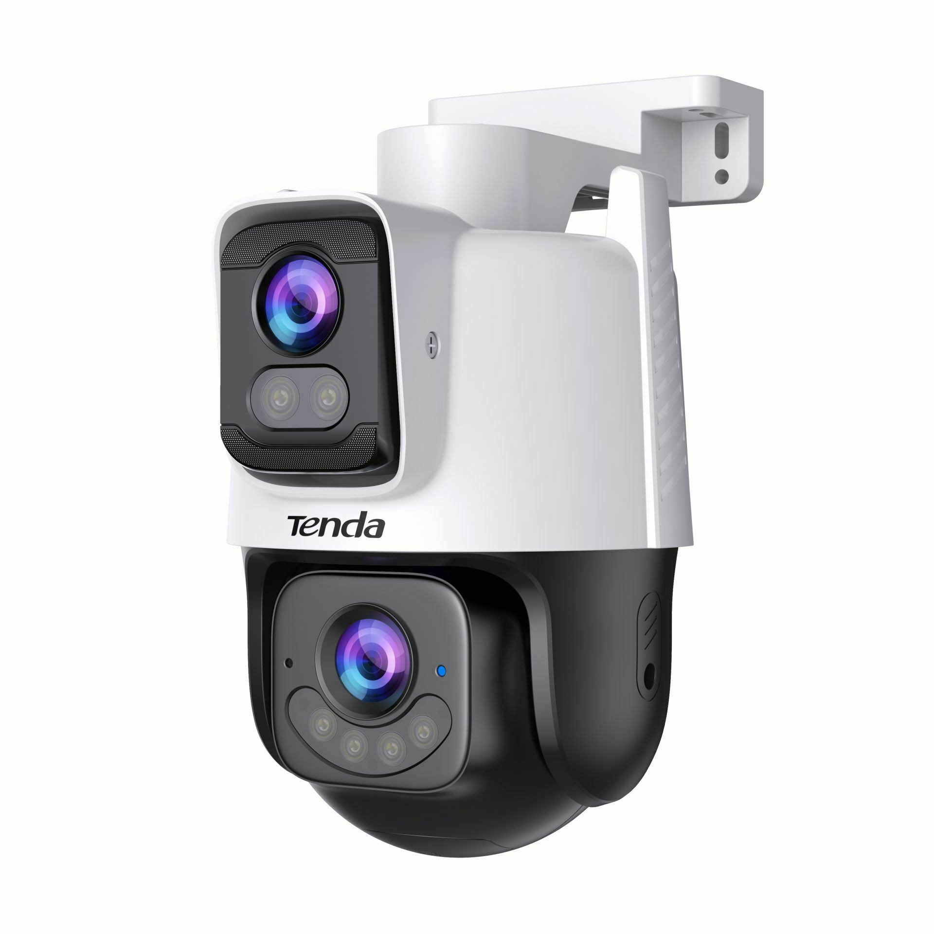 Zunanja IP kamera Tenda 3.0MP PT Dual prinaša vrhunsko zaščito z inovativnim sistemom dvojnih leč, ki omogoča sočasno pokrivanje dveh različnih območij in zmanjšanje slepih točk. Opremljena je z 3MP širokokotno fiksno lečo za širši pregled in 3MP telefoto PT lečo za podrobne posnetke.