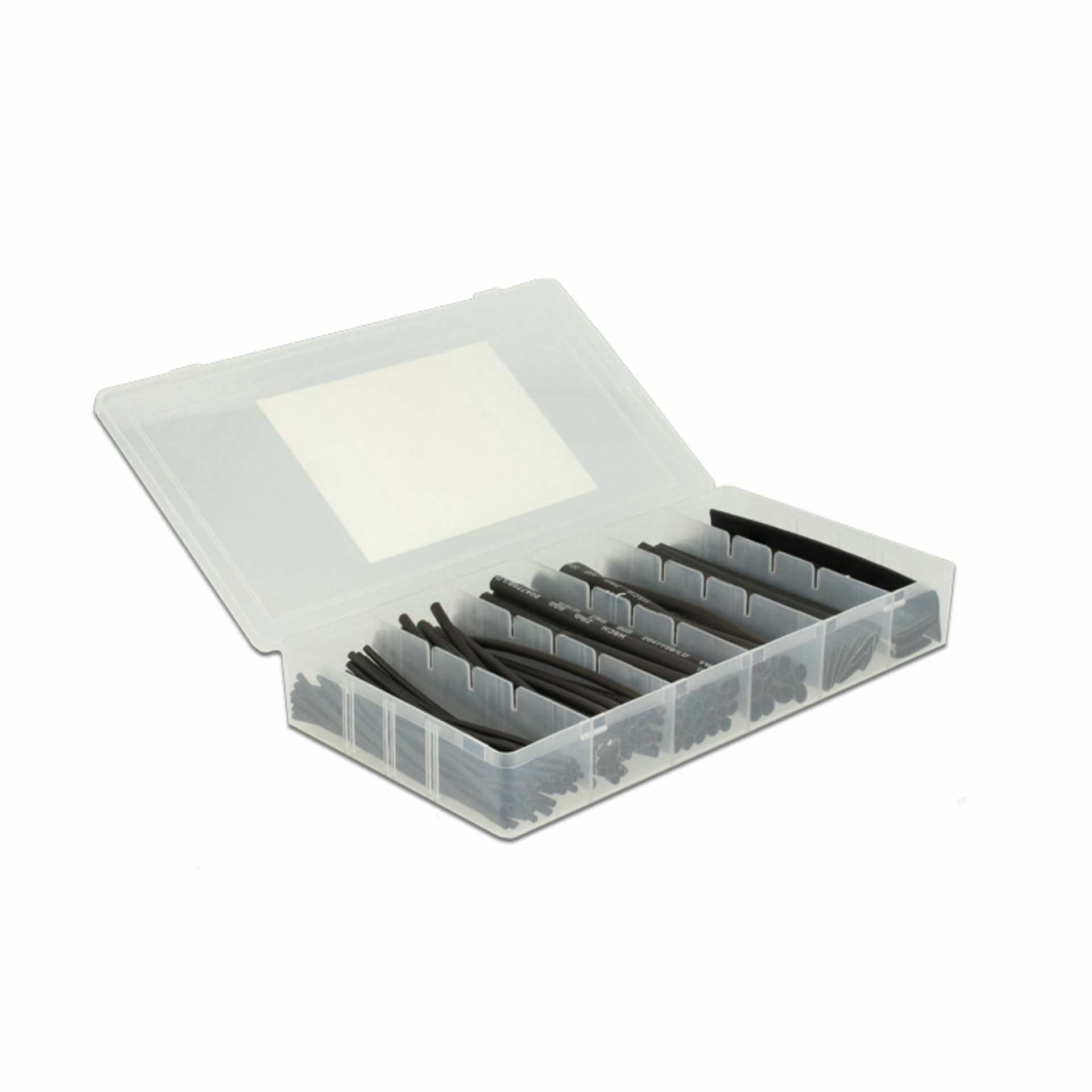 Delock komplet termo skrčk črne barve je namenjen popravilu ali izolaciji kablov. Zaradi različnih širin skrčk, so te univerzalno uporabne.