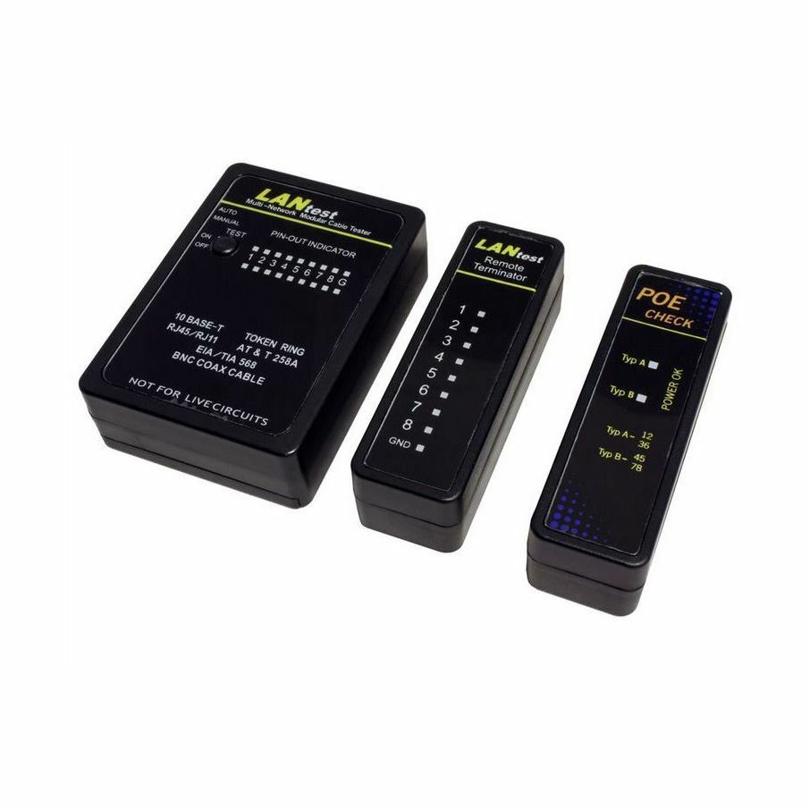Tester za preverjanje računalniških in BNC povezav. Osnovna enota, oddaljena enota za preverjanje povezave in oddaljena enota za preverjanje PoE napajanja.