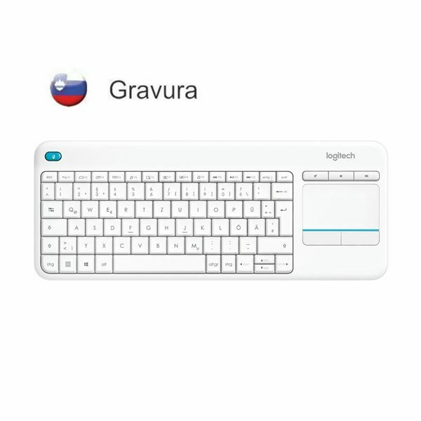 Tipkovnica Logitech K400, brezžična, tiha, velika 3,5" sledilna ploščica, kompatibilna z nekaterimi (glej seznam) televizijami, bele barve ...