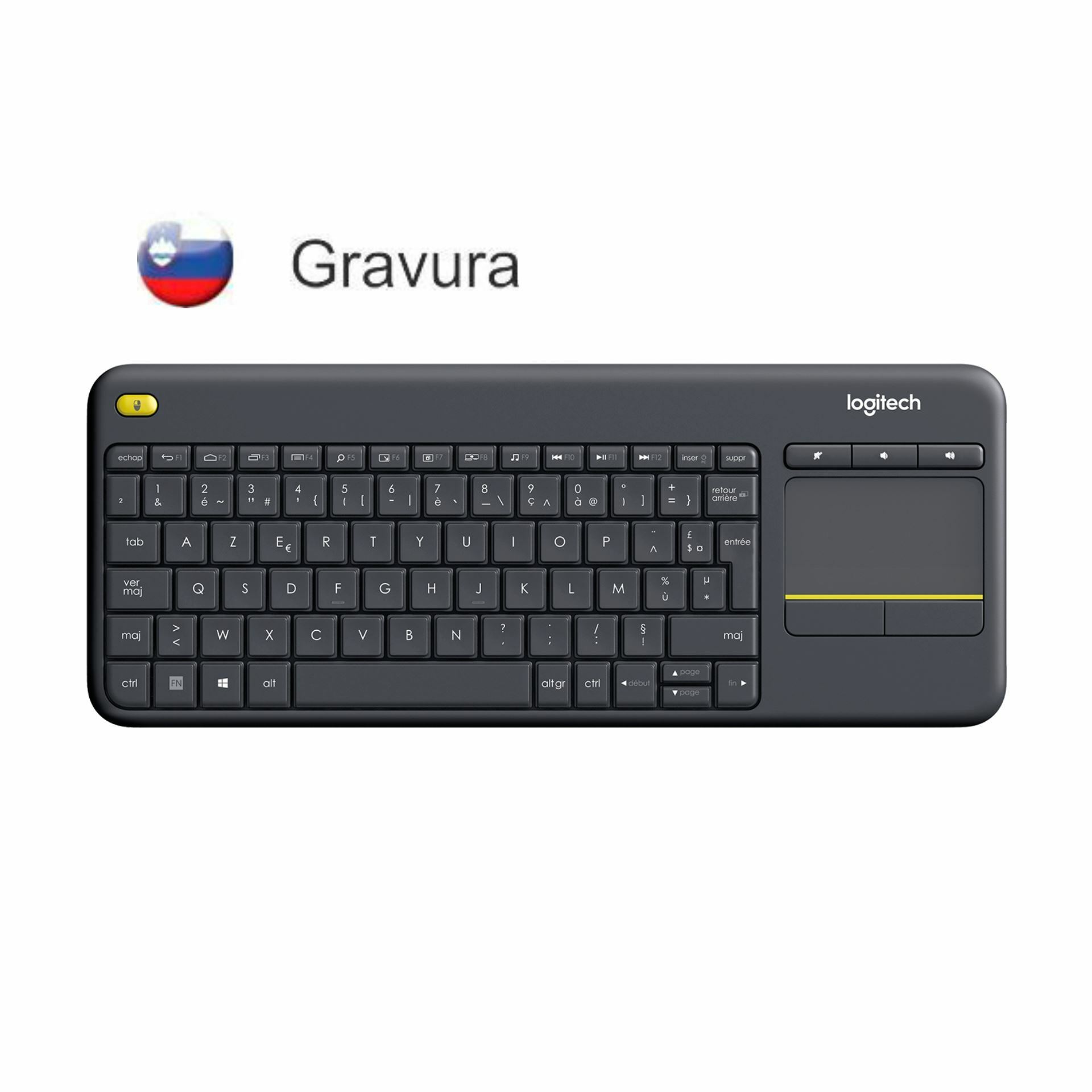 Tipkovnica Logitech K400, brezžična, tiha, velika 3,5" sledilna ploščica, kompatibilna z nekaterimi (glej seznam) televizijami, črne barve ...