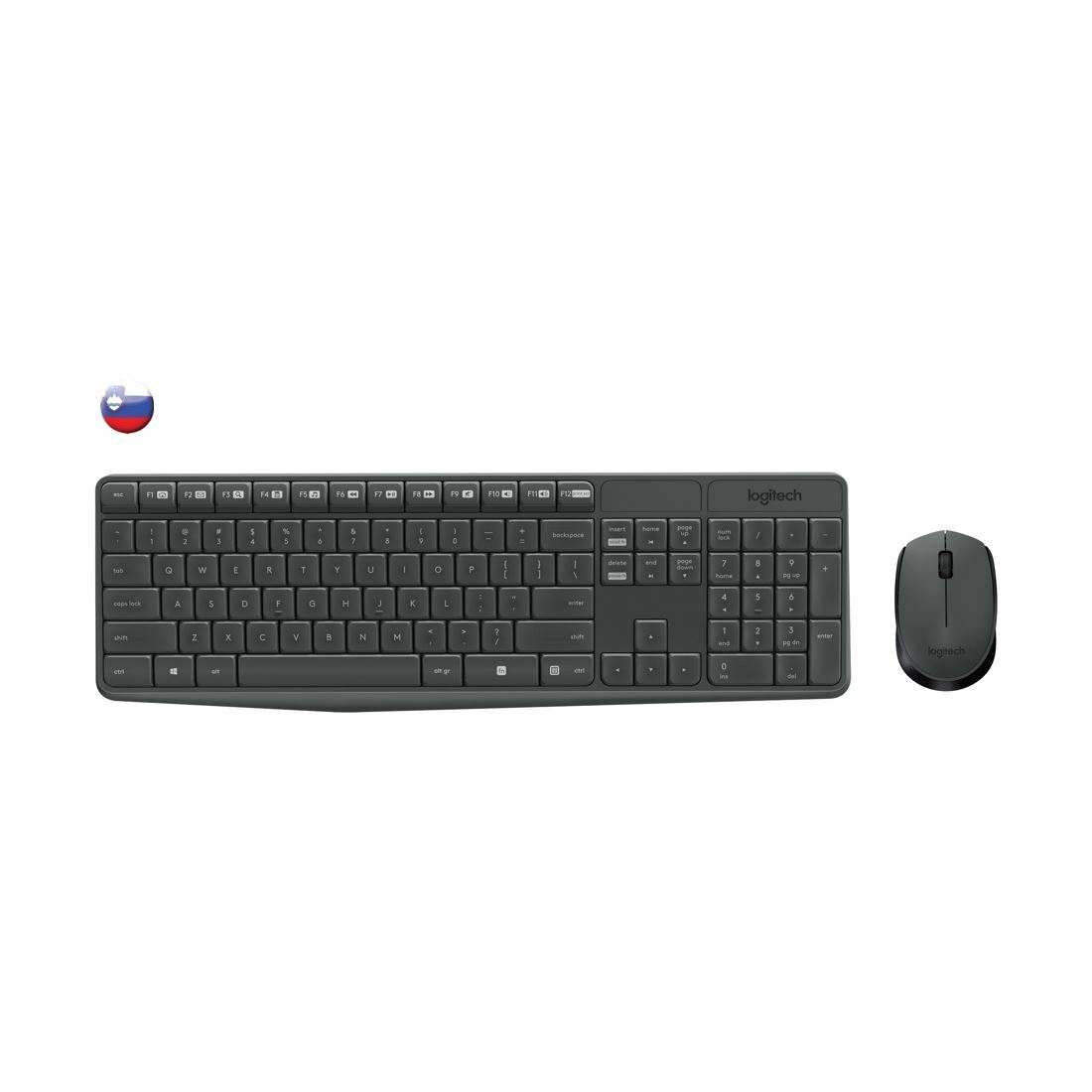 dodatno: baterije 2x AAA (tipkovnica) 1x AA (miška); Do 36 mesecev dolga življenska doba baterij v tipkovnici in do 12 mesecev v miški, Tipkovnica je odporna na politje, Nizkoprofilne in zaobljene tipke