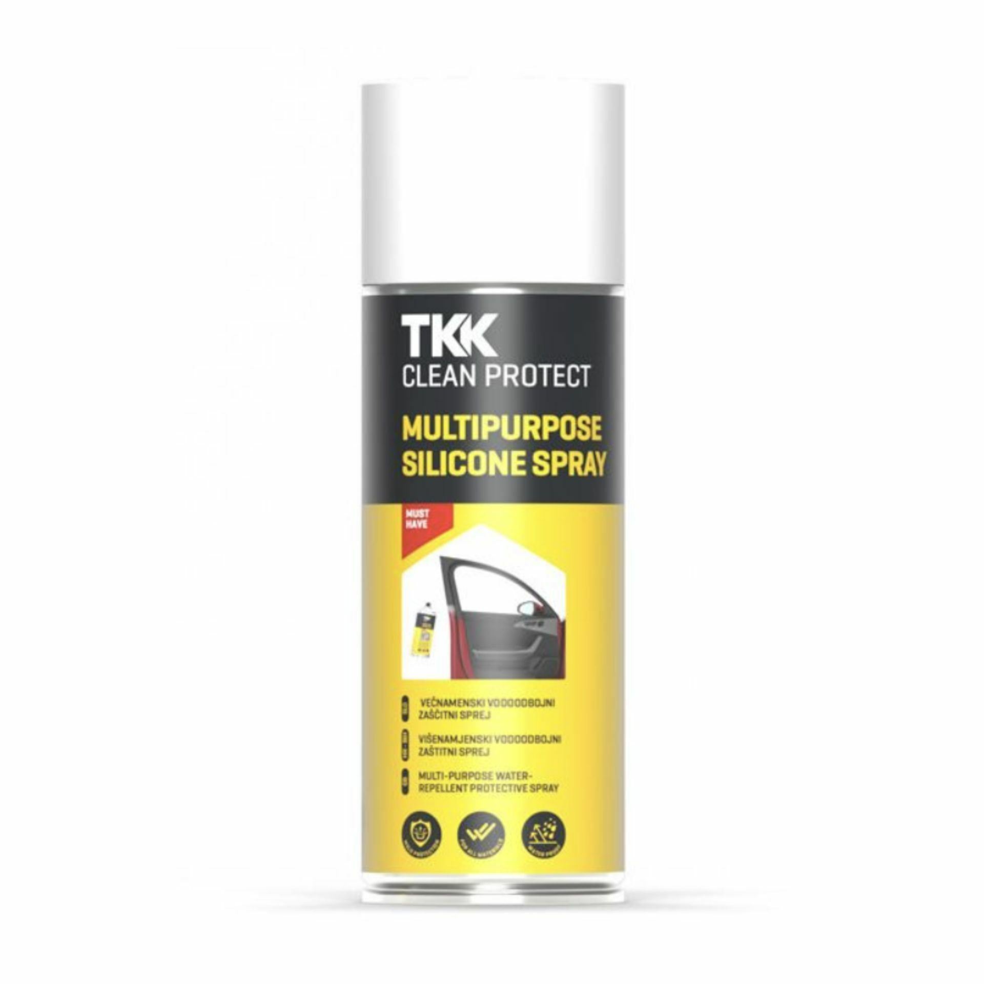 Večnamenski vodoodbojni silikonski sprej 400ML za mazanje kovin, plastike in gume. Transparentni sprej je zasnovan na visoko zmogljivem silikonskem olju. Ustvari vodoodbojno plast in je uporaben za podmazovanje in kot ločilno sredstvo pri obdelavi in predelavi plastike, gume in kovin. Zmanjšuje trenje in preprečuje obrabo obremenjenih delov.